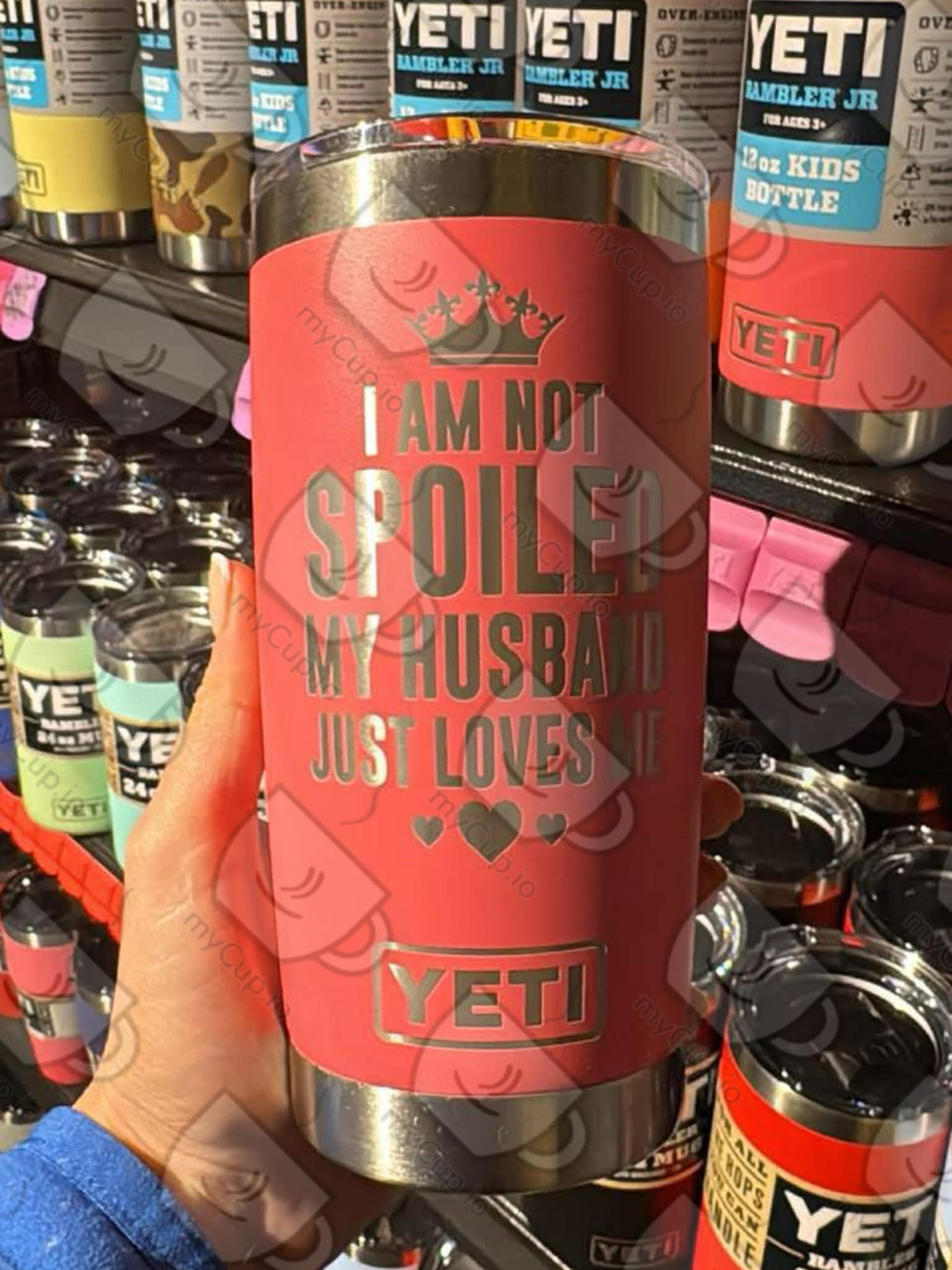 Enjoy your morning coffee with the beautifully engraved 20oz I’m Not Spoiled-Wife Tumbler from My Cup Engravings. This sleek tumbler features a unique design that wraps fully around the cup, making it a perfect blend of style and function. Whether you’re sipping coffee, tea, or a cold drink on the go, this tumbler keeps your beverage at the perfect temperature while adding a touch of elegance and charm to your daily routine.